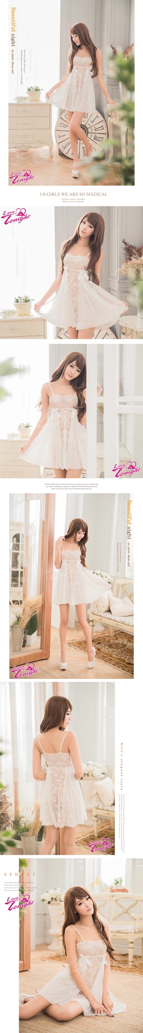 ►您現在的位置:首頁>甜美雅致!白色蕾絲二件式性感睡衣