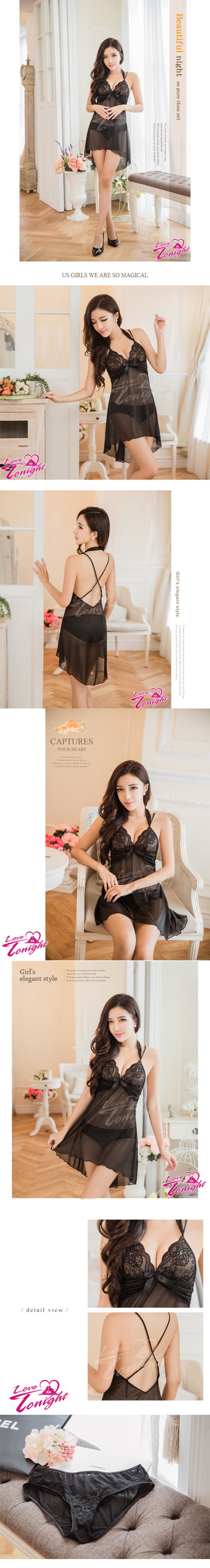 ►您現在的位置:首頁>黑色柔紗繞頸交叉美背二件式睡衣