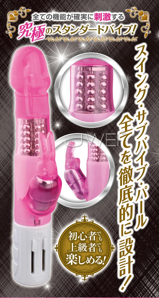 亀頭デザインのプックリと大きなヘッドがグリングリン穴の中でスイングし、入口をパールが刺激する王道タイプのパール入りバイブレーター。 高品質の素材を採用した触り心地抜群の素材は、ツルツルとした表面なので、挿入しやすい素材となっています。全てが上位品質の初心者からバイブ派の上級者まで悦ばれるスタンダードなデザインで、使いやすい無段階スライド式のコントローラーになっています。 ハイパワーアクションを微調節しながら好みの振動を探し、内部を激しくグリグリと刺激するパール回転に超振動のクリ責め子機バイブのビンビン刺激が加われば、どんな女性もイチコロです。 生活防水仕様だから、使った後のメンテナンス性にも優れています。