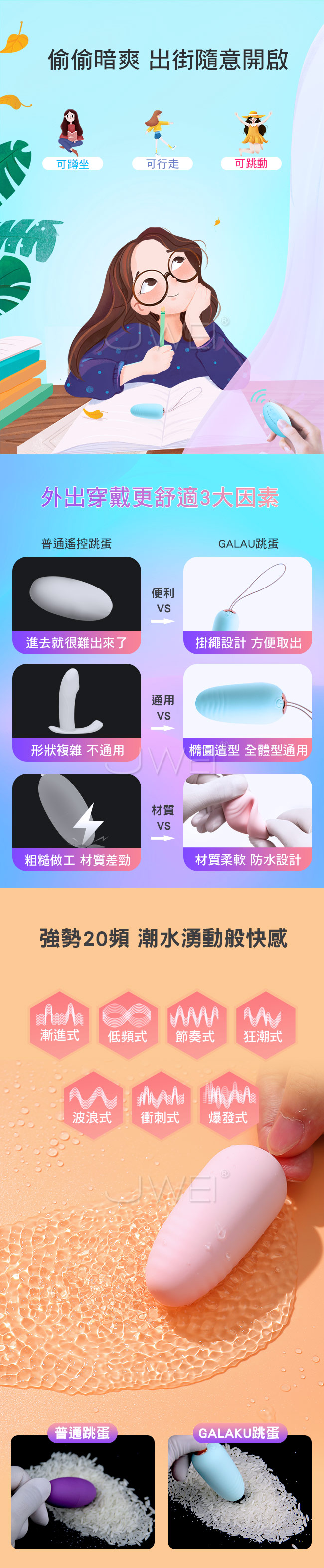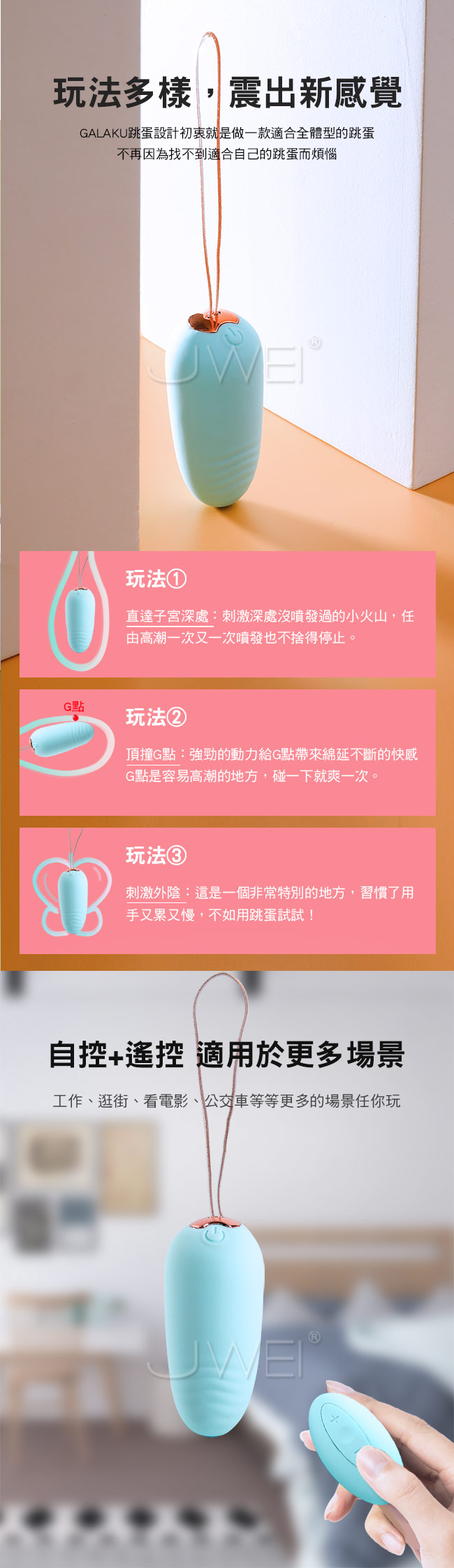 ■特色:20段變頻震動、防水設計、無線遙控