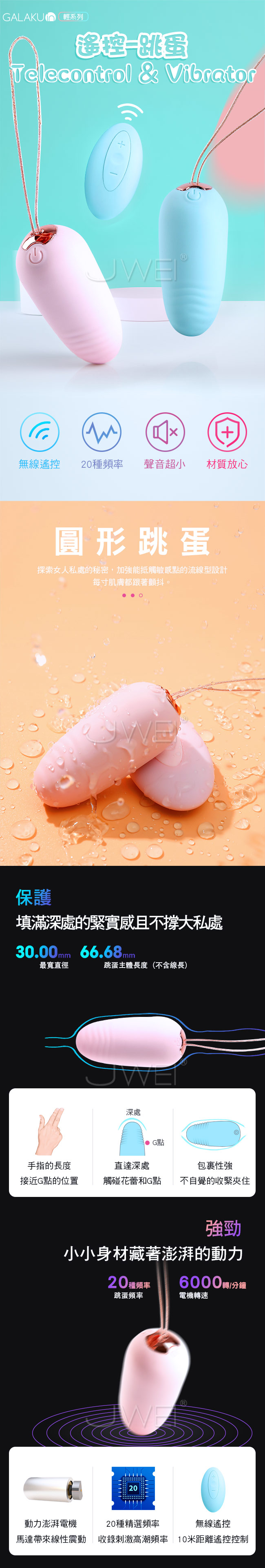 | GALAKU.夏娜 20段變頻無線遙控防水跳蛋-櫻花粉(遙控版)