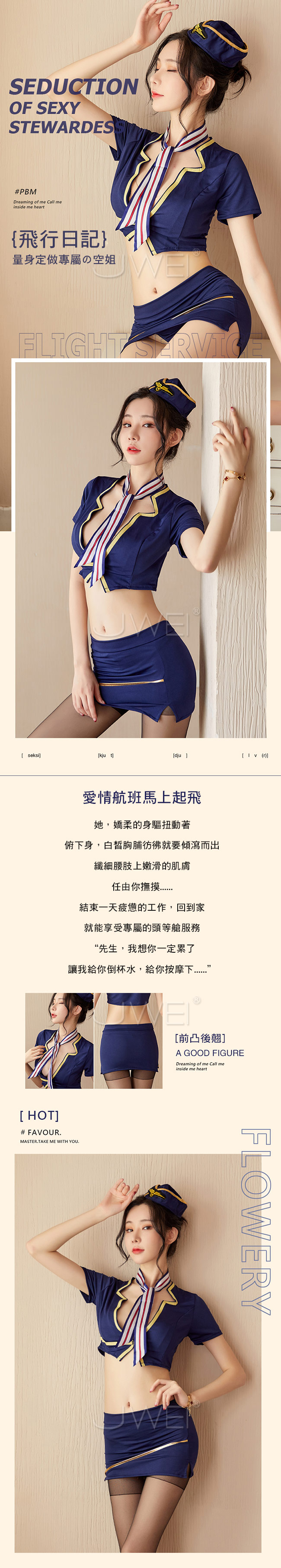 分體式空姐套裝,露出女人性感曲線,