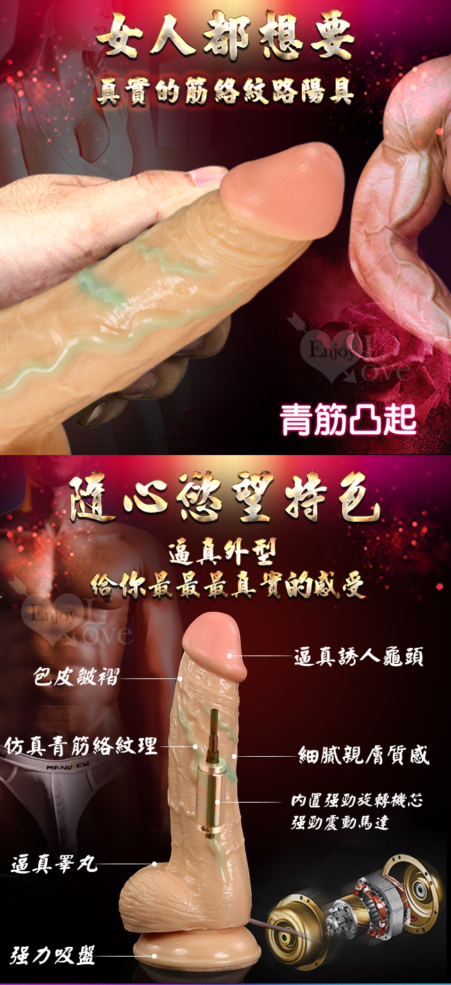 撩情高手 - 逼真老二按摩棒擁有逼真的外表,採用柔軟矽膠讓您感受猶如真人般的體驗。共10種段速旋轉變頻強勁震力任您選擇,360度狂攪蜜穴瞬間達到高潮欲罷不能。