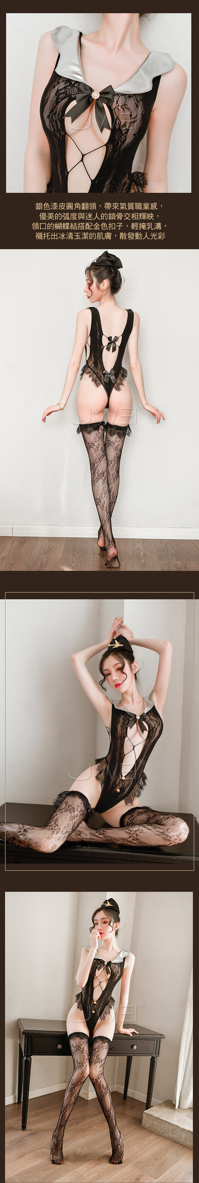 ◇◆貼心服務.蕾絲高衩連身空姐角色扮演服三件組◆◇