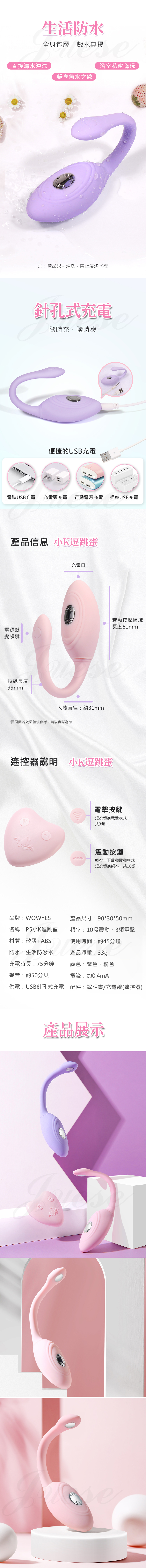歐亞思.P5小K逗 電擊脈衝10段變頻震動遙控跳蛋