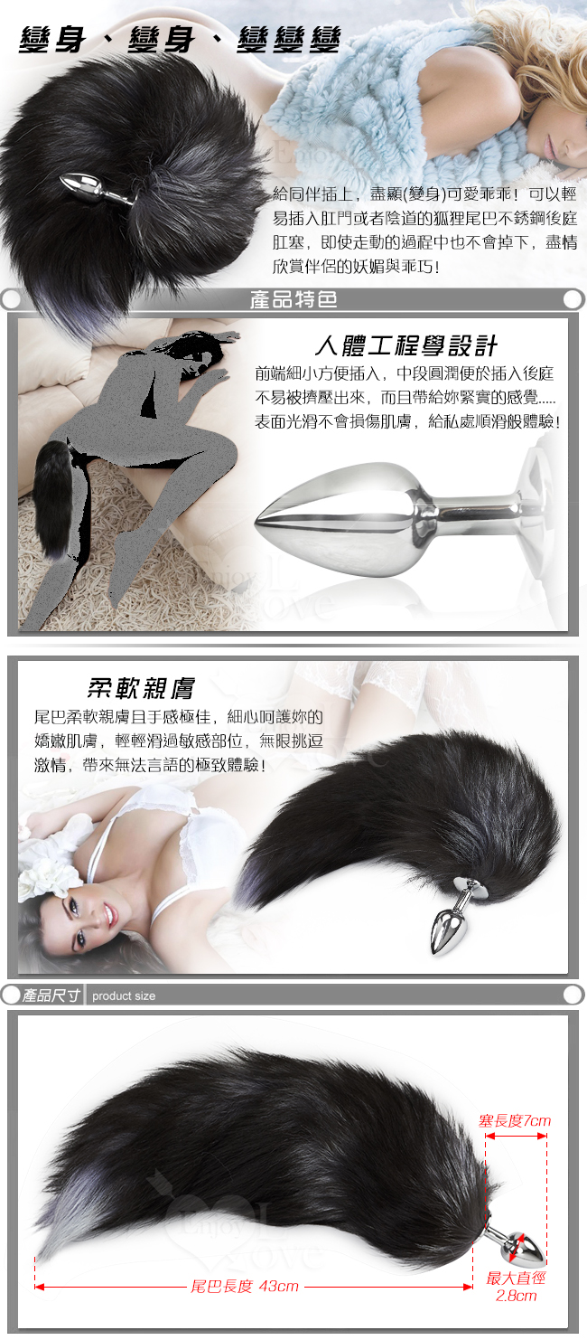 女人狐媚之美,盡在不銹鋼狐尾巴後庭塞!