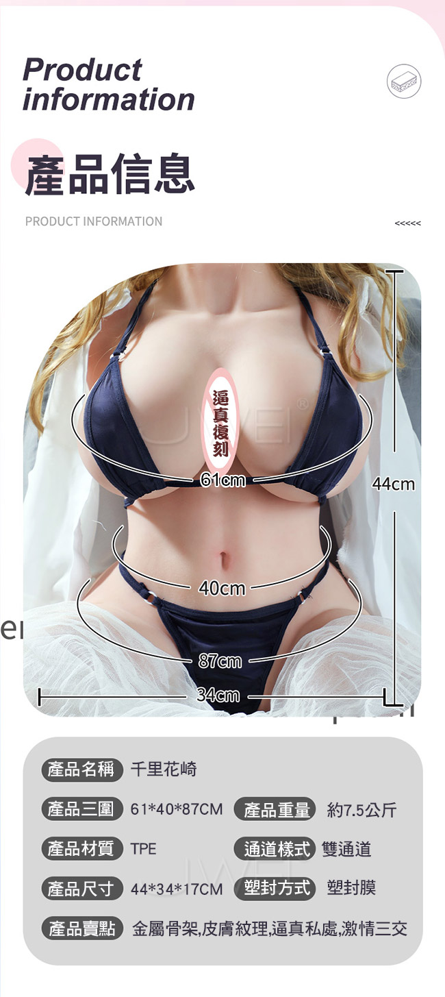►您現在的位置:首頁>謎姬 MizzZee.千里花崎.半身逼真細節復刻皮膚紋理雙通道-約7.5kg
