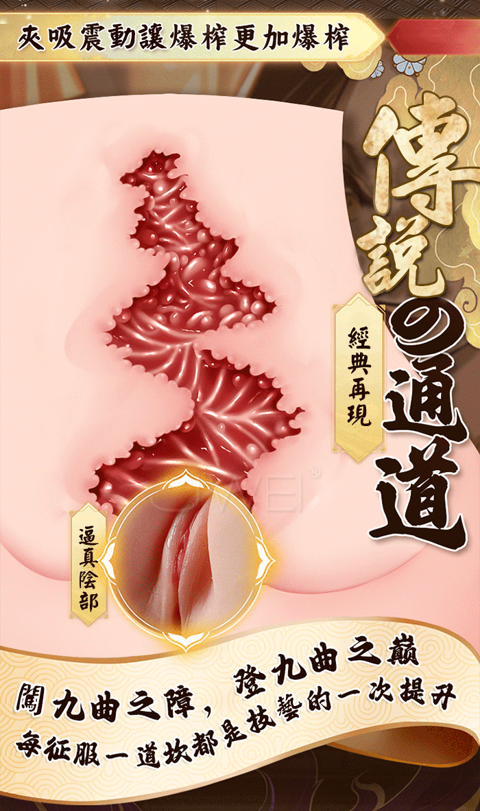 九曲回廊古典名穴來源解密傳聞據野史記载,此穴玉門窄小,廊彎彎曲曲。其中又 有普通與古典之分。九曲之穴幅度較小,有如羊腸小徑,俗稱「羊腸」古典的萬裡 桃一,穴中九曲,有如退廊一般。故名”九曲回廊”真人皮膚紋路。造型逼真,軟 心工藝帶吸吮震動功能!