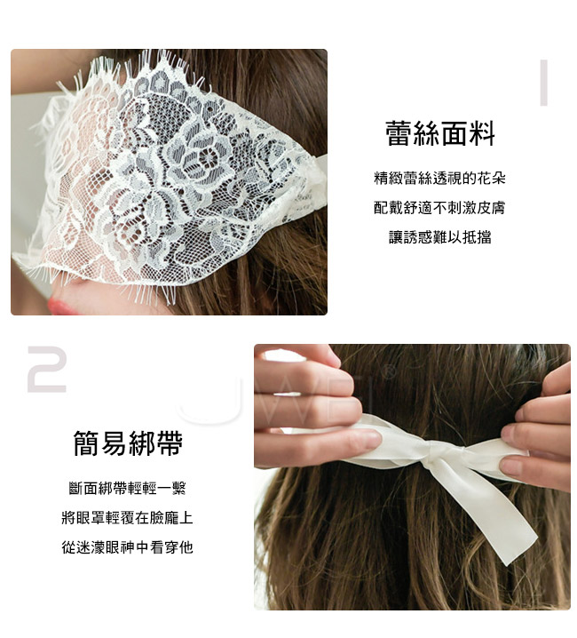 精緻蕾絲透視的花朵,配戴舒適不刺激皮膚讓誘惑難以抵擋~ 緞面綁帶輕輕一繫將眼罩輕覆在臉龐上, 從迷濛眼神中看穿他~
