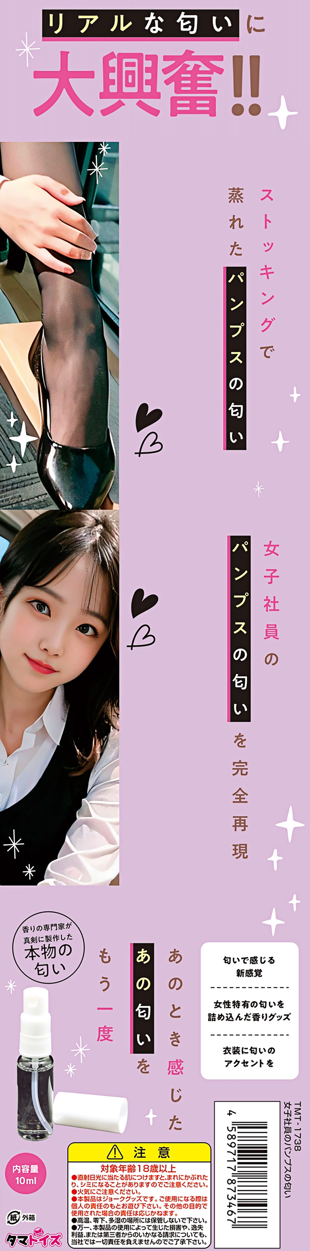 新製法エタノールフリー 女子社員のパンプス匂いを完全再現 リアルな匂いに大興奮!! 女子社員の足から発する芳しき香り!! ストッキングで蒸れたパンプスの匂い 匂いで感じる新感覚 あのとき感じたあの匂いをもう一度 女性の特有の匂いを詰め込んだ香りグッツ 衣装に匂いのアクセントを 内容量10ml 香りの専門家が真剣に製作した本物の匂い